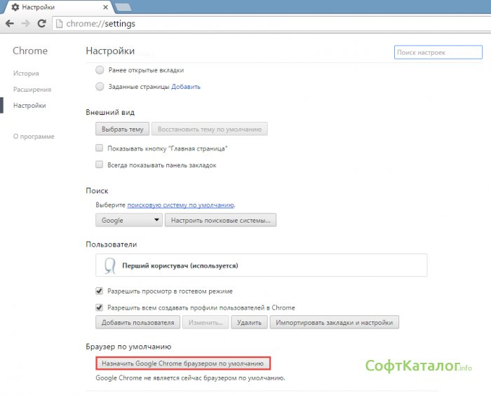 2. Если вас не устраивает Opera, то запускаем Google Chrome, заходим в Настройки и нажимаем кнопку.