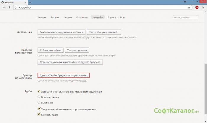 3. Перейдем к Яндекс браузеру от поисковой системы Yandex. Он также является очень популярным. В этом случае тоже нет никаких сверхъестественных манипуляций. Зайдем в меню Настройки и нажмем кнопку.