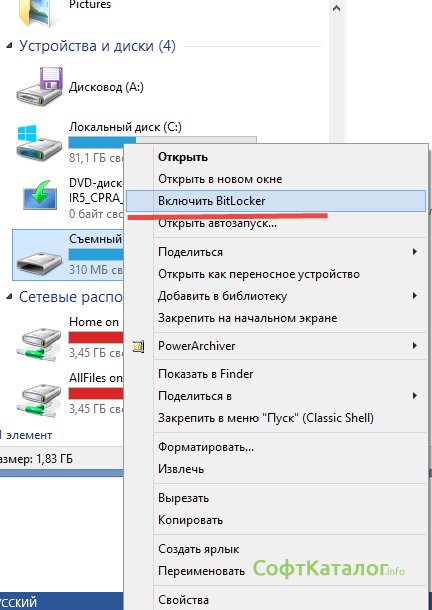Если же после этого у вас так и не получается разблокировать флешку, то возможно вы ее заблокировали с помощью BitLocker – встроенная в windows функция паролирования для съемных носителей. Что бы проверить это, нажмем по флешке правой кнопкой мыши. Если вам предлагают включить Bitlocker , то флешка не заблокирована данным программным обеспечением, если же предлагают разблокировать, то вам понадобиться вспомнить пароль.