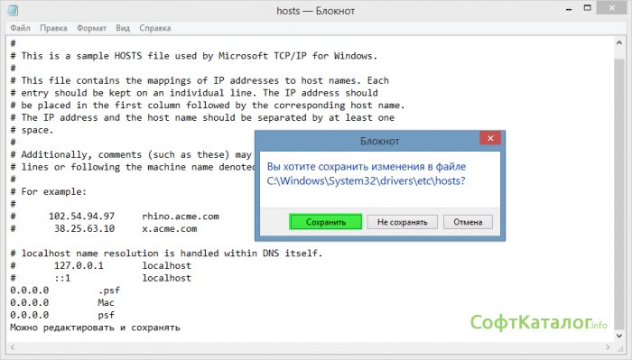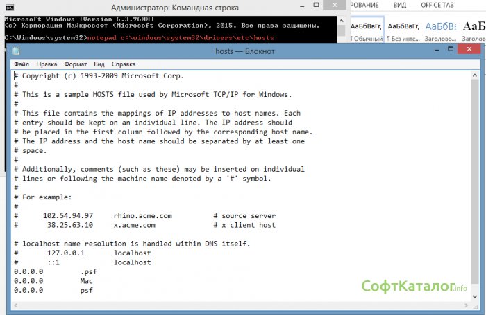 нажимаем , после чего откроется на редактирование нужный нам файл Hosts.