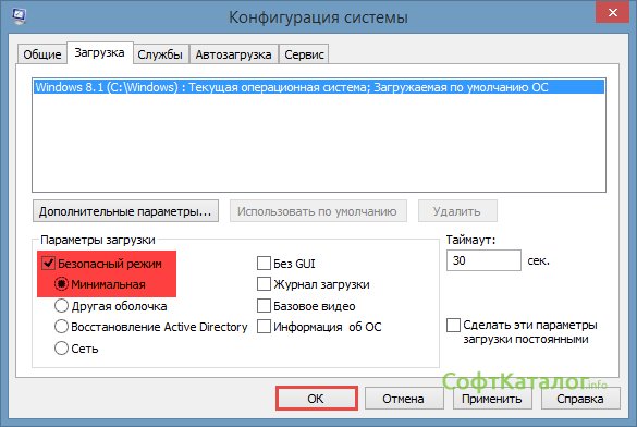 В открывшемся окне Конфигурация системы на вкладке Загрузка ставим галочку Безопасный режим и нажимаем кнопку .