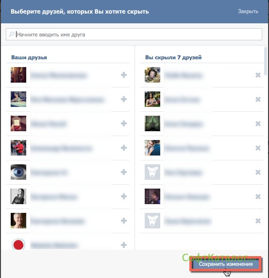 Для того, чтобы добавить нужных друзей в список скрытых, просто берем и нажимаем левой кнопкой мыши по нужному приятелю.