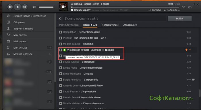 Выбрав нужную аудиозапись, у вас появится возможность скачать выбранную песню с помощью установленного ранее плагина.