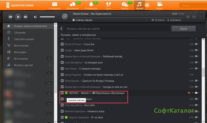 Сделав все манипуляции заходим на сайт odnoklassniki.ru и ищем нужный нам аудио трек.