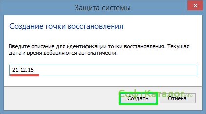Создать – ручное создание точки восстановления. Введете дату или любое имя для точки, нажмете кнопку – начнется процесс создания точки восстановления.
