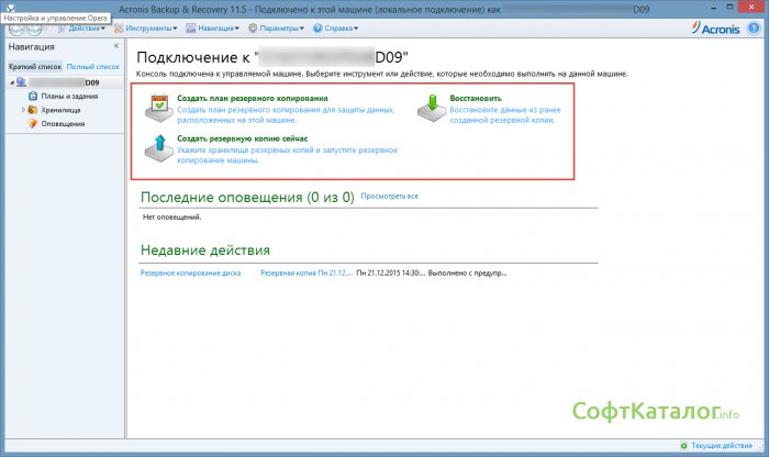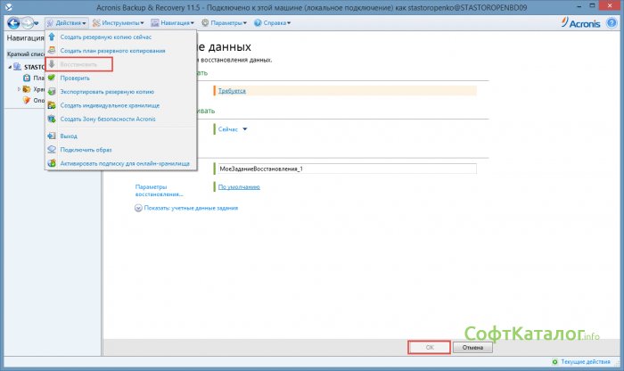 Следующий вариант – использование Acronis Backup & Recovery. Очень интересная и удобная утилита. Если не хочется возиться с настройками Windows и нужно более гибкое средство восстановления, то эта программа для вас. Она платная, но при этом Acronis Backup полностью отрабатывает деньги потраченные на лицензию. Вы всегда будете уверены в том, что, если отказало ваше программное обеспечение вы, сможете откатиться на нужную вам дату и продолжать работать.