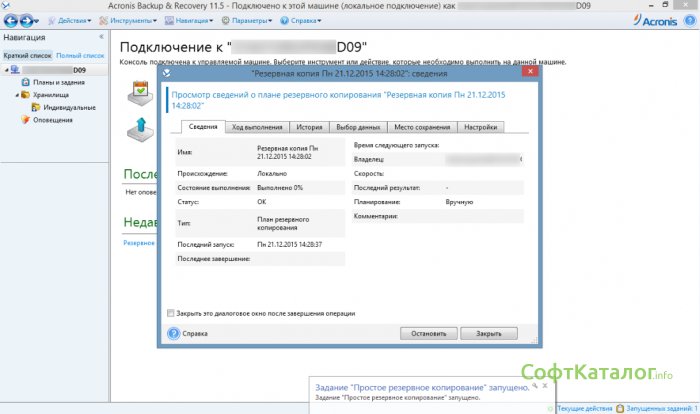 Так как программа есть на русском я зыке и имеет интуитивные настройки, то мы разберем только создание резервной копии и восстановление из нее. Разбирать планировщик создания резервных копий считаю бесполезно т.к у вас могут быть другие задания и требования к нему.