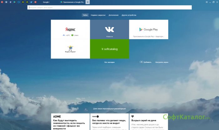 Откройте обозреватель на стартовой странице. Проверьте, чтобы здесь не было никаких всплывающих окон и баннеров. Их присутствие говорит о вирусной активности – необходимо просканировать компьютер на предмет вредоносных программ. «Нормальное» главное окно должно выглядеть так.