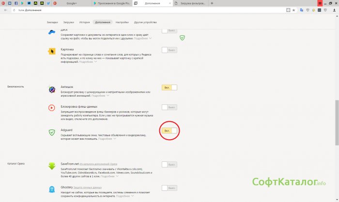 В появившемся окне прокрутите список вниз до пункта Adguard – adblock plus аддон, который поможет убрать всплывающую рекламу в Яндекс Браузере навсегда. Установите галочку, как показано на скриншоте.