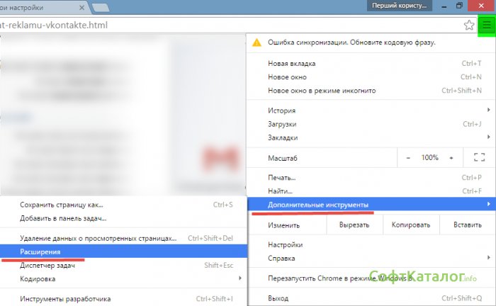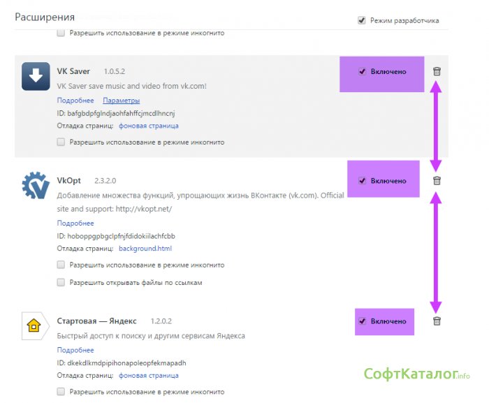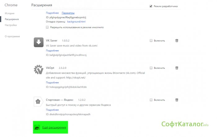 Google Chrome – зайдем в Настройки Дополнительные инструменты и Расширения. В открывшемся окне находим ненужные нам или просто лишние расширения и удаляем их, либо просто отключаем. Также, как в предыдущих случаях, нажимаем F5 – тем самым перегружаем страничку в социальной сети.