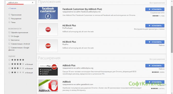 Google Chrome – зайдем в правом верхнем углу в настройки, выберем пункт Дополнительные инструменты Расширения В открывшемся окне внизу страницы нажмем на Еще расширения. Далее в строке поиска пишем Adblock. Выбираем нужный и нажимаем кнопку