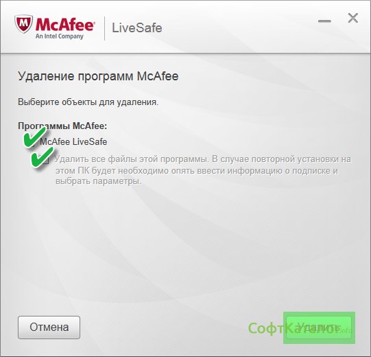 Находим антивирус MacAfee и нажимаем по нему два раза. Ставим нужные галочки жмем - пойдет процедура удаления антивируса.