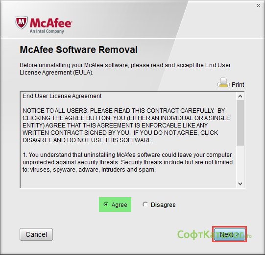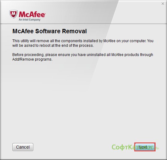 3. Последний способ удаления антивируса McAfee - с помощью утилиты одноименной компании - McAfee Consumer Products Removal tool. Эта программа удаляет все программное обеспечение от McAffe, установленное на вашем компьютере. Работает со всеми ОС семейства Windows: