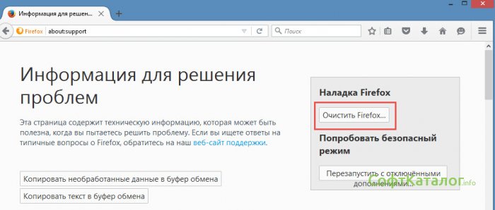 Нажимаем кнопки ALT+H, либо вводим в строку адреса about:support и нажимаем .