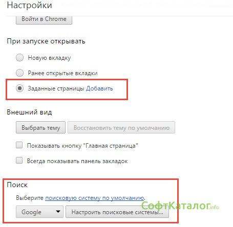 Немного ниже вы увидите пункт Поиск, где нужно выбрать систему по умолчанию (Google, Yandex)