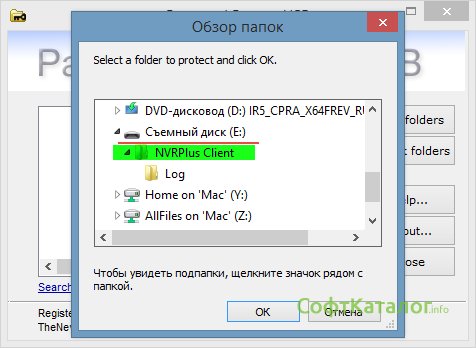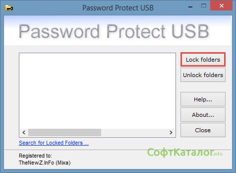 При нажатии программа предложит выбрать папку на носителе, а после выбора можно поставить на нее пароль.
