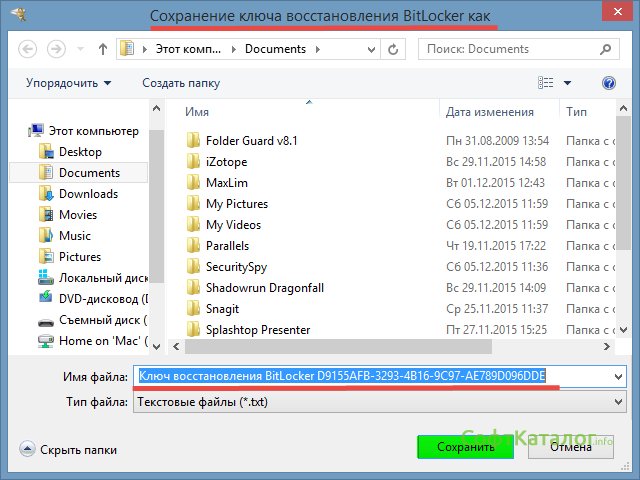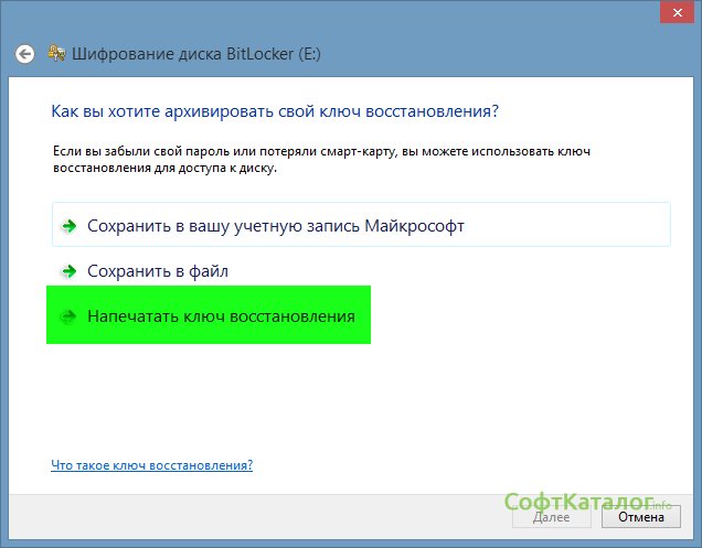 После ввода пароля нажимаем кнопку и вам предложит выбор, куда сохранить ключ восстановления доступа:
