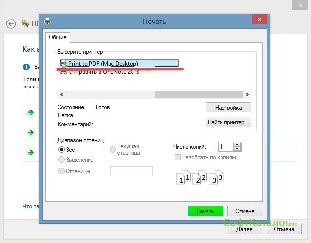 - Напечатать ключ восстановления;