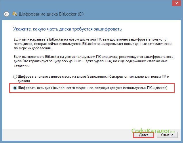 После этого жмем и программа спросит: зашифровать весь диск целиком, или только его часть? Выбираем весь – нажимаем .