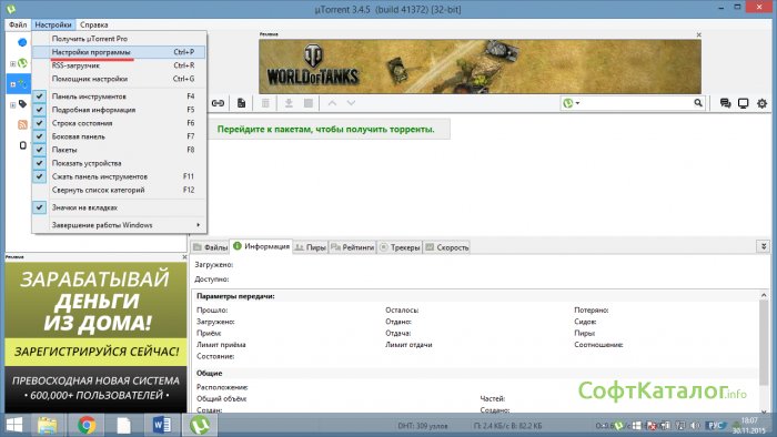 1. Итак, для увеличения скорости скачивания нам нужно зайти в настройки - нажимаем сочетание клавиш Ctrl+P откроются Настройки программы.