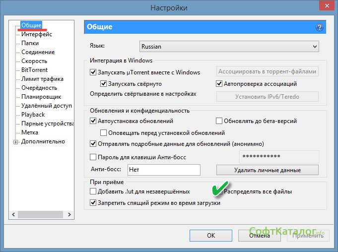 В пункте Общие ставим галочку Распределять все файлы – это ускорит процесс записи на жесткий диск.