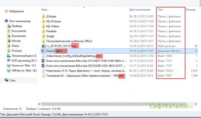 В Windows 8 по-умолчанию не видно расширения файла, но зато видно какой тип. Тип и расширение помогают программам понимать какой файл принадлежит им, т.е каждая программа может открывать файлы с расширениями, которые присуще только ей. Например, MS Word может открывать файлы с расширением .doc, .docx, .rtf, .txt и другие.