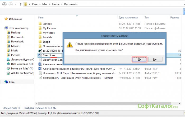 То есть имя файла, затем точка и расширение. При нажатии клавиши , или на ноутбуке Fn+F2, можно изменить расширение на нужное вам. Если вы измените документ на расширение, например, .exe, то виндовс спросит у вас: "Вы уверены в том что хотите изменить расширение?" Нажимаем кнопку .