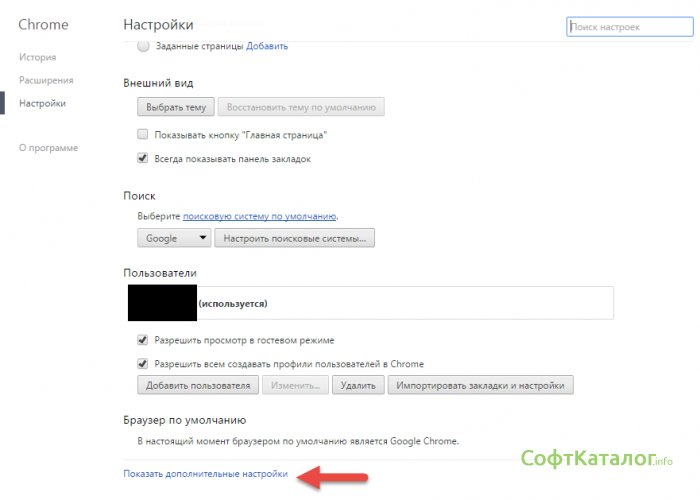 В открывшихся настройках мы ищем Показать дополнительные настройки...
