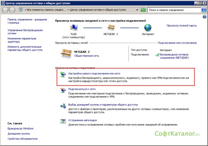 Для первого пункта мы воспользуемся встроенными в виндовс средствами. Нажимаем правой кнопкой мыши в правом нижнем углу монитора на вашем сетевом подключении и выбираем пункт Центр управления сетями и удаленным доступом. В открывшемся окне нужно выбрать пункт Создание и настройка нового подключения или сети.