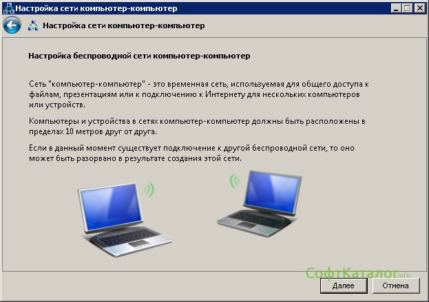 В открывшемся окне выбираем Настройки беспроводной сети компьютер-компьютер и жмем