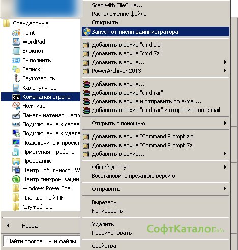 Обязательно запускайте командную строку с правами администратора. Для этого нужно зайти в Программы Стандартные и нажать правой кнопкой мыши по пункту Командная строка и в контекстном меню нажать на Запустить от имени администратора, после чего вводить команды в зависимости от ваших требований.