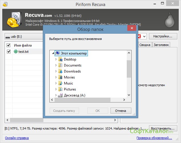 Если же эти два условия соблюдены, то рассмотрим вариант восстановления данных с помощью стороннего программного обеспечения. Recuva - абсолютно бесплатная программа, которую можно скачать на нашем сайте, предназначенная только для того, чтобы восcтанавливать файлы с разных носителей. Типы файлов могут быть абсолютно разные, а также файлы могут быть скрыты системой - их тоже есть возможность востановить. Мы рассмотрим процесс востановления текстового файлаю.