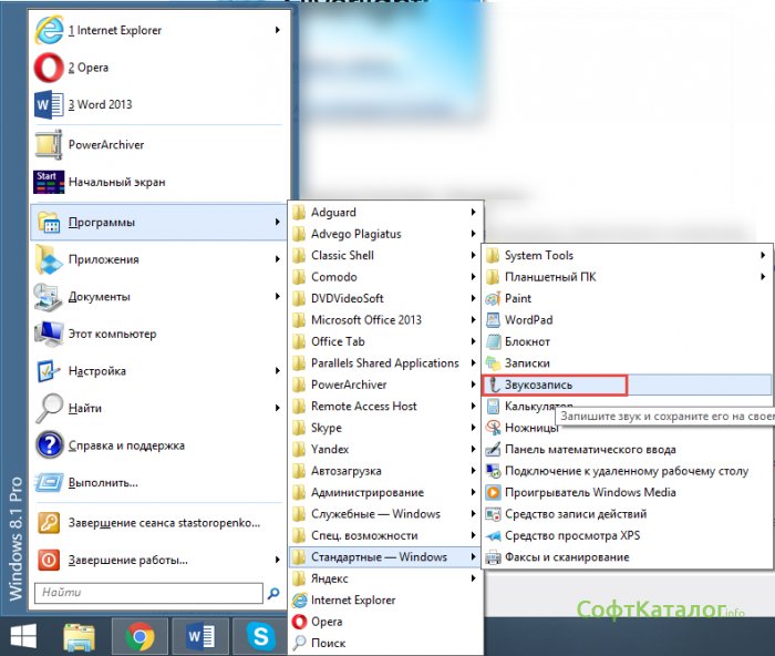 1. Первый из способов — это встроенная программа Windows Звукозапись. Для ее открытия нам нужно будет зайти в Программы Стандартные Звукозапись.