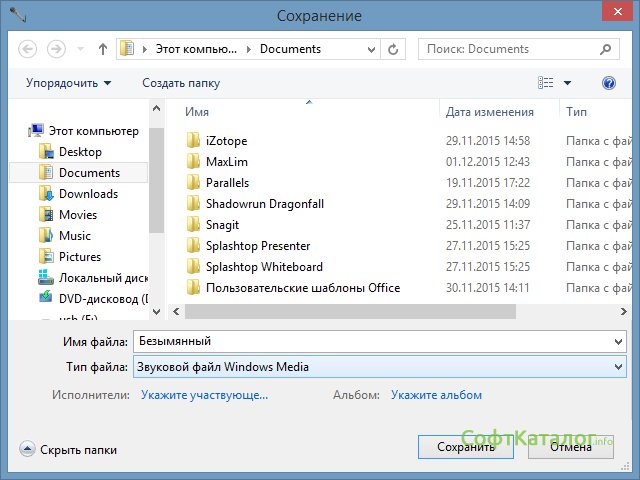После того как вы надиктовали какой-то текст, нужно нажать кнопку , программа сама предложит сохранить ее в формате wma – это лицензионный формат Microsoft для записи и воспроизведения аудио потока.