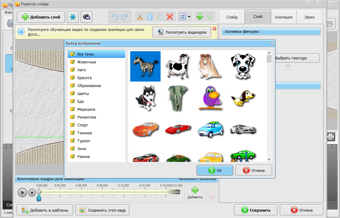 Специализированный софт от известного российской компании AMS Software, которая разработала несколько десятков программ для Windows. Их продукт ФотоШОУ Про предназначен для создания презентаций, в основе которых лежат не текстовые документы и геометрические фигуры, а мультимедийный контент – видеоролики, анимированные объекты, аудиодорожки и фотографии. При этом схема смены слайдов мало чем отличается от всем привычного Microsoft PowerPoint – они так же «листаются», как и в известной программе от американского разработчика.
