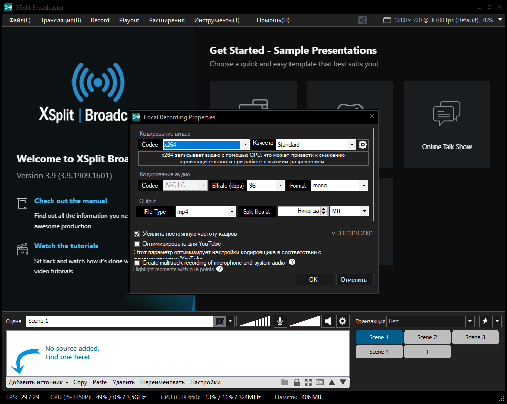 Интересно, что в 2009 году софт разрабатывался как скринкастер. Сегодня XSplit Broadcaster — одно из самых мощных приложений для стрима, позволябщее транслировать все что угодно куда угодно. Как и задумывалось изначально, программу можно использовать для записи видео с экрана компьютера на локальный диск. В ней можно регулировать качество стрима, накладывать различные объекты, добавлять эффекты, гибко переключаться между разными источниками сигнала, подключать надстройки. Благодаря такой универсальности приложение можно применять для создания обучающих видеороликов и организации видеоконференций.