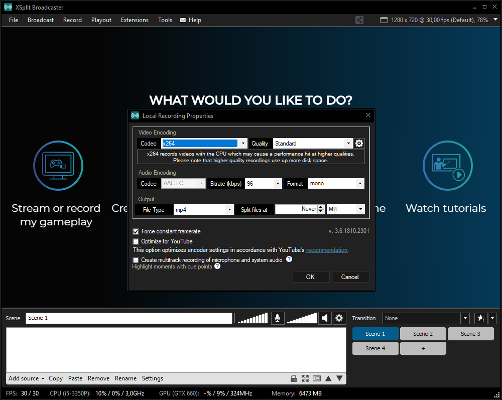 Последнюю версию Иксплит Бродкастер нельзя скачать бесплатно для Windows XP – программа стабильно работает в оболочках Windows 7, 10, 8. Без приобретения лицензионного ключа вы не сможете пользоваться рядом функций вроде Twitch-чата, при стриме с разрешением выше 720p на все видеоролики будет накладываться логотип разработчика.